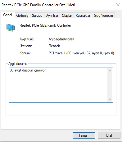Evet şimdi ise sol tarafta gördüğümüz aygıt yöneticisine tıklıyoruz ardından ağ bağdaştırıcıları kısmından kendi kontrolcümüzü seçip özellikler diyoruz benimki Realtek olan.