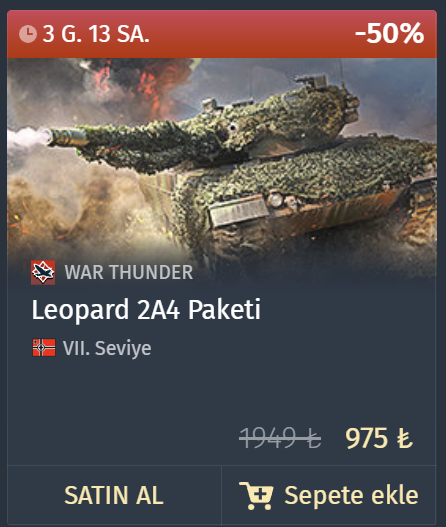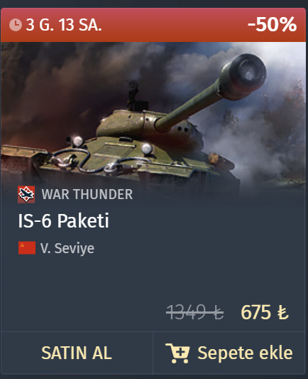 Herkese iyi sosyaller War Thunder'a yeni başladım yaklaşık 40 saati doldurdum bazı premium tanklara %50 indirim gelmiş sizce hangilerini almalıyım yüksek kademe almayı düşünüyorum. Alman ağacı kastığım için şimdilik king tiger paketini aldım ve yanına 1 tane daha almayı düşünüyorum.