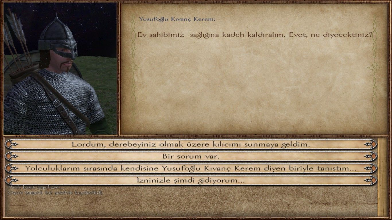 Arkadaşlar Buhran 1400 modunda Güzide Hatun tarafından Emir Hilmi'yi Kastamonu Kalesi'nden kaçırmam için görev aldım. Gardiyanı öldürüyorum ama giremiyorum. Çünkü nedeni ise zindan kapısının arena kapısı olması. İçine girdiğimde de uzayda, arazide iki tane de adam savaşıyor birisi bayılıyor diğeri boş boş duruyor. He bir de son olarak lordun kalesinin içine girdiğimde salon kapısı değil "." yazıyor. İçeri girdiğimde benim kopyam ya sizden korkmuyorum dövüşeceğim diye bağırıyor ya da Kral Sigismund diye davranıyor. Trajikomik bir olay cidden random atmak yasak olmasa 10 satır random atmıştım. ;) Ben çözemedim bu işi yardım ederseniz memnun olurum. :)