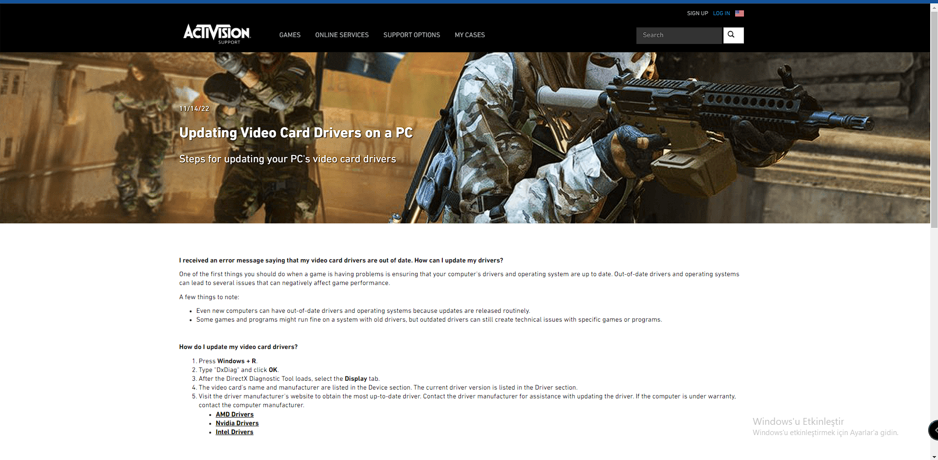 Öncelikle iyi günler. Warzone 2.0 oynamaya çalıştığımda "GPU driver version" hatası alıyorum.