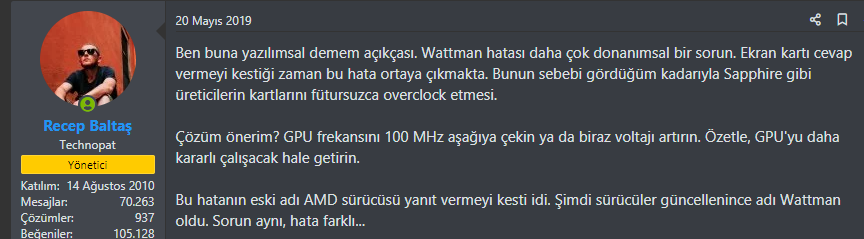 Bunu voltajı azaltın şeklinde güncellemem gerekebilir. Öte yandan sorunun donanımsal olduğu konusundaki görüşlerim değişmedi.Wattman yazılımsal veya donanımsaldır.