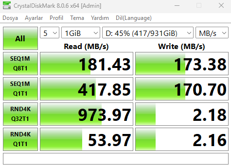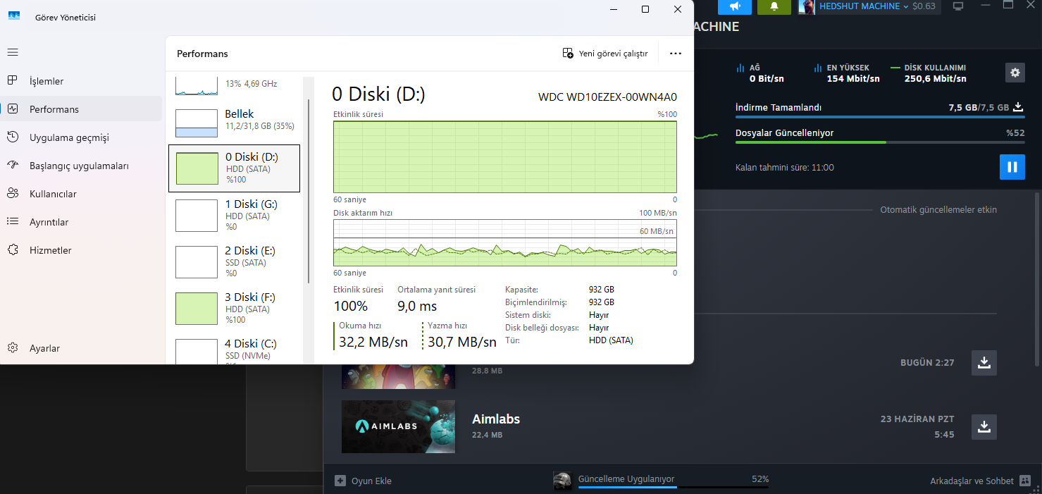 Hız testi yaptığımda 140 MB/s civarında sonuç çıkıyor ama mesela PUBG girdiğimde okuma hızı 20 MB/s oluyor. Oyunlar aşırı yavaş açılıyor bu yüzden. PUBG'yi açıp bir maça girmem 5 dakika kadar sürüyor, Valorant'ın sadece ana menüsüne gelmesi 3 - 4 dakika sürüyor. Dosya aktarımında vs. sorun yokken oyun dosyalarını okuması neden bu kadar yavaş olabilir, bir çözümü var mı?
