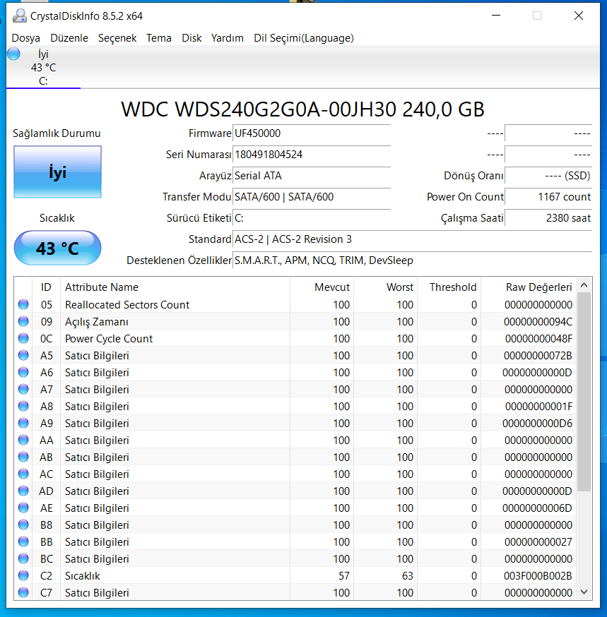 Bad sector yok. SSD 2 yaşından fazla.