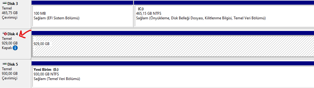 2.resimdeki kapalı yazısındaki ünleme tıklayınca kapasitesi kalmadığından disk cevrimdışı yazıyor, çevrim içine aldığımda disk bilgisayarımda gözüküyor fakat biçimlendirmek istedigimde ise hata verip tekrar offline oluyor.(F sürücüsü)