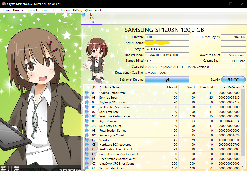 1206 gün çalışmış sadece. Aktif kullanım da gitmez diyorum ben. 1206 gün çalışmış bir disk tabii ki yaşar 12 yıl sonra bile.