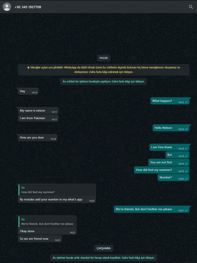 İyi akşamlar hocam aynı şeyi yaşıyorum iki gündür Pakistan'dan ve Hindistan'dan taciz WhatsApp mesajları ve aramalar alıyorum acaba sorunu nasıl çözdünüz yardımcı olursanız sevinirim. @sweiss