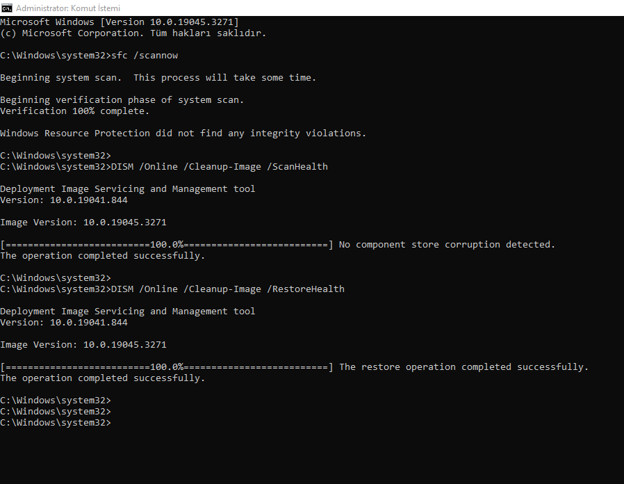 Daha sonrasında Windows bellek tarama yaptım. Ancak burada bellek hatası aldım ve bu taramada testlerimi böldüm.