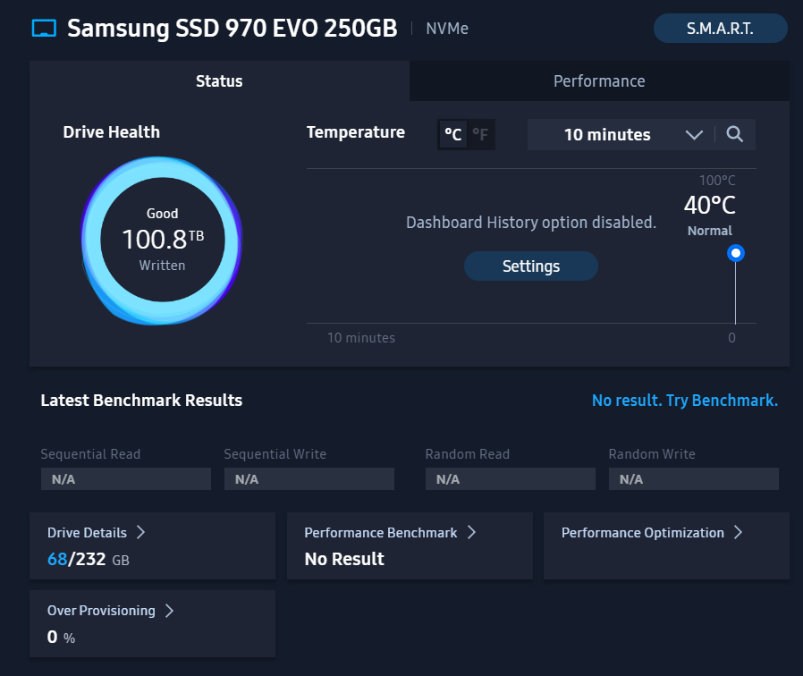 Sorun genel olarak diske işaret ediyor ve başlıktaki hata hiçbir dosyada da yok. Şimdi, Magician yazılımı üzerinden Firmware Update yap ve