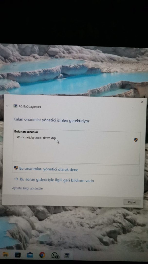 Etraftaki modemlerin hiçbirini görmüyordu ve "Wi-Fi ağı bulunamıyor" gibi bir şey yazıyordu.