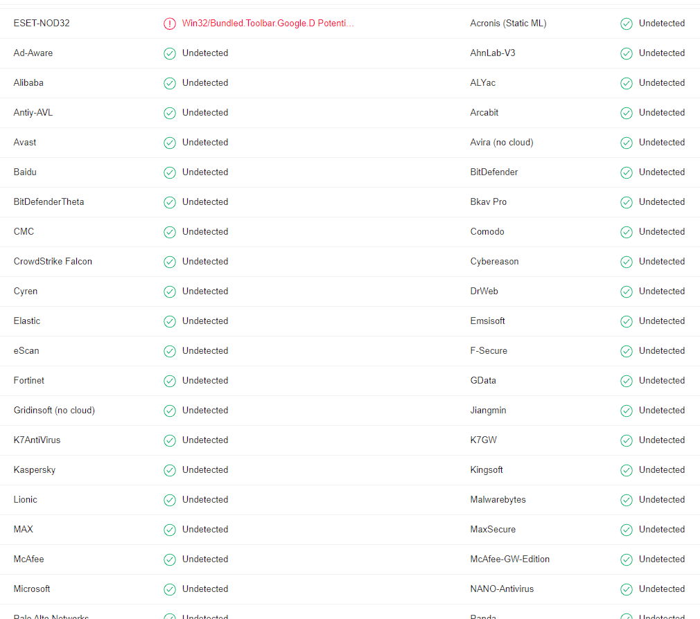 Gezginlerden Photoscape diye bir program indirdim bilgisayara kurmadan evvel VirusTotal ile tarama yaptığım da hiçbir virüs programı tehdit bulmadı NOD32 hariç.