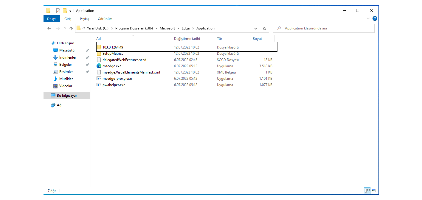 Artık Microsoft Edge sistemden kaldırmış bulunmaktayız. Ekranda da klasörlerin boş olduğunu görebilirsiniz.