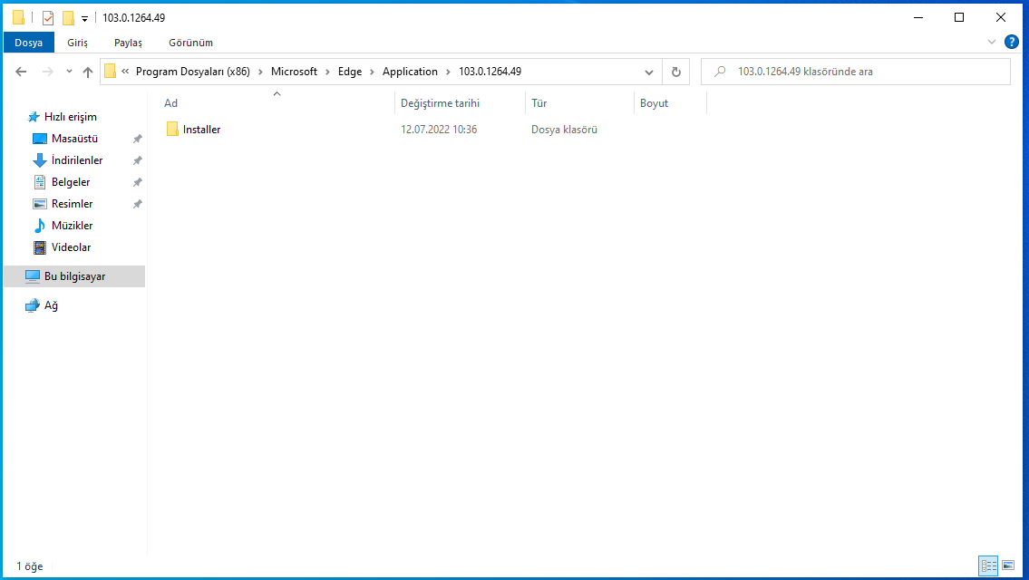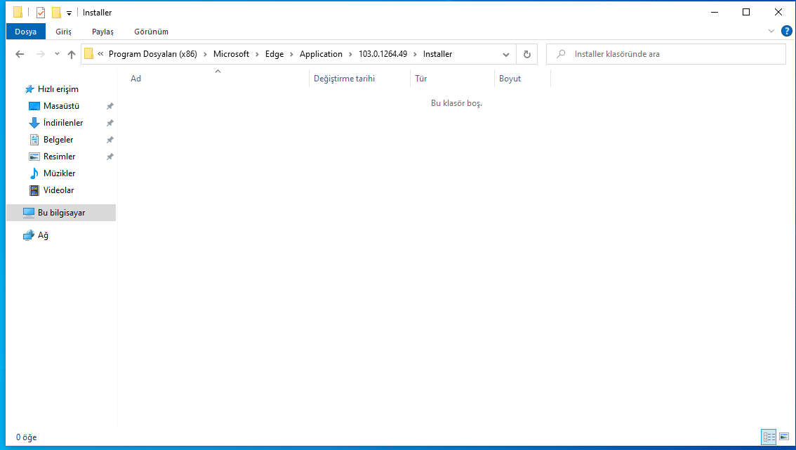 Artık Microsoft Edge sistemden kaldırmış bulunmaktayız. Ekranda da klasörlerin boş olduğunu görebilirsiniz.