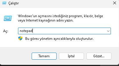 Arama yerine gelin "Not Defteri" yazın ve açın.