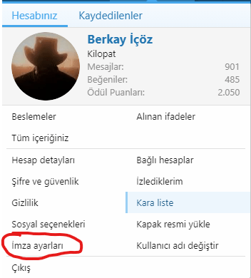 Sağ üstte adınıza tıklayıp açılan pencereden "imza ayarları" kısmına gelin, dilediğinizi yazın ve kaydet deyin. Bu kadar.