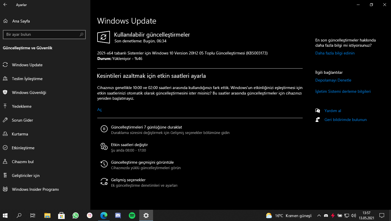 Halihazırda Windows 10 20H2 sürümünde olan arkadaşlar artık sadece 167 KB boyutundaki bir güncelleme ile 21H1 sürümüne geçebilir.