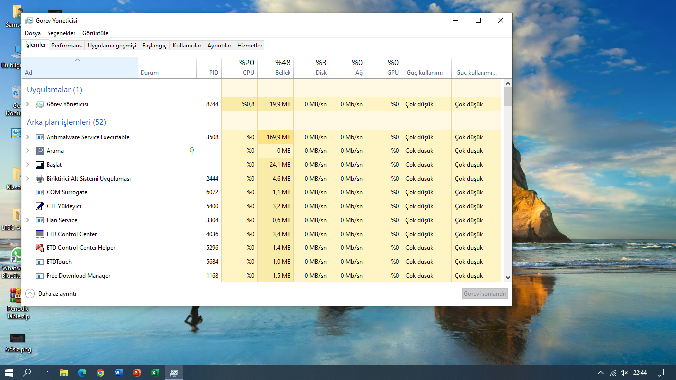 Hocam ben de boşta %50 RAM kullanımı (ki eskiden de öyleydi.) Artı olarak da disk kullanıyor.