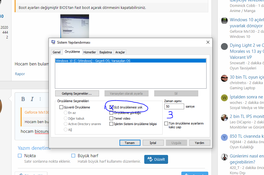 Hocam BIOS'unuz desteklemiyor ya da eski olabilir, Windows arama çubuğuna MSConfig yazıp gösterdiğim şeyi deneyin isterseniz.