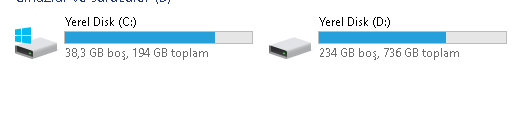 1 TB HDD var 2'ye böldük durumlar böyle.