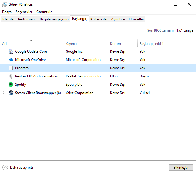 Görev Yöneticisi/Başlangıç kısmına geçtiğim vakit listelenen programlar arasında "Program" adında bir şey var.