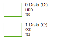 Merhaba, birkaç ay önce 250 GB SSD'den 500 GB'a yükseltme yaptım. Eski SSD'im Görev Yöneticisi'nden baktığımda 0 olarak gözüküyor HDD 1 olarak gözüküyordu. Şimdi ise HDD 0 yeni SSD 1 olarak gözüküyor. Bu yeni SSD'yi nasıl 0 yapıp HDD'yi 1 yaparım? Yardımcı olacak arkadaşlara şimdiden teşekkürler.