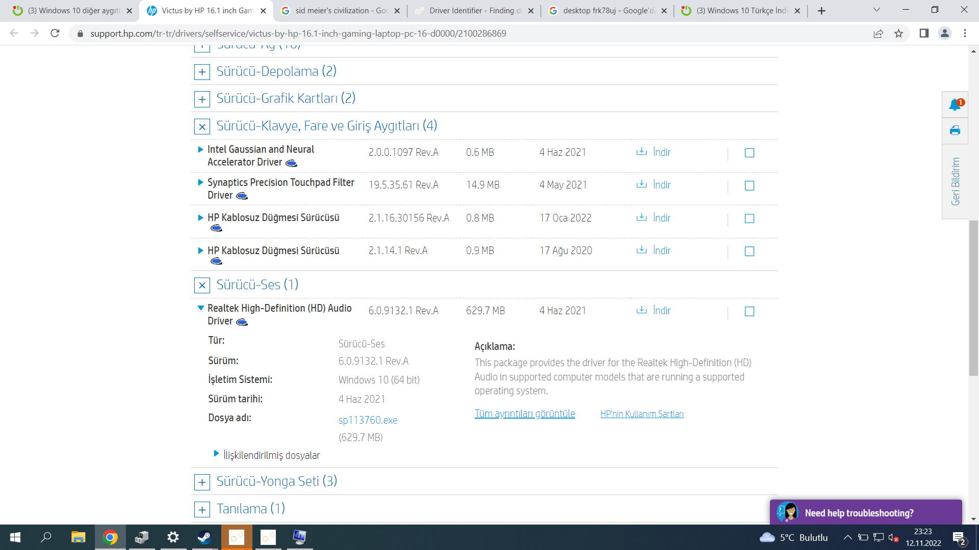Victus by HP 16.1 inch Gaming Laptop PC 16-d0000 Yazılım ve Sürücü İndirmeleri | HP® Müşteri Desteği