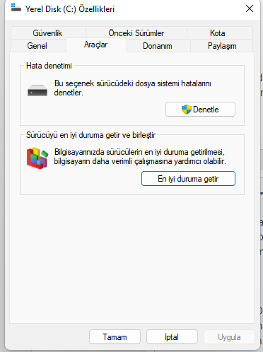 'Araçlar' sekmesindeki düzeltmeleri deneyin.