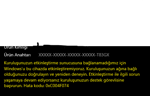 Arkadaşlar merhaba. Yaklaşık 3 gündür "Windows Etkinleştirme" sorunu alıyorum.