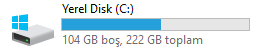 Windows 10 format sonrası C diskinde az yer görünüyor