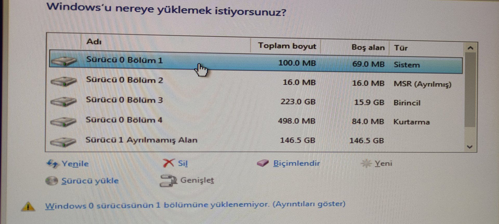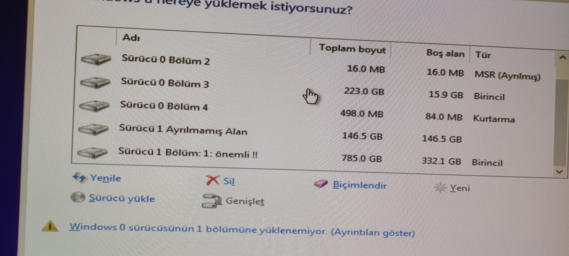 SSD'ye Windows 10 kuracağım ama SSD bicimlenmiyor diğer MB yazan sürücüler silinmiyor. HDD'deki MB yazan sürücüler silindi. SSD'ye Windows 10 kurmam için ne yapmam gerek şu an?