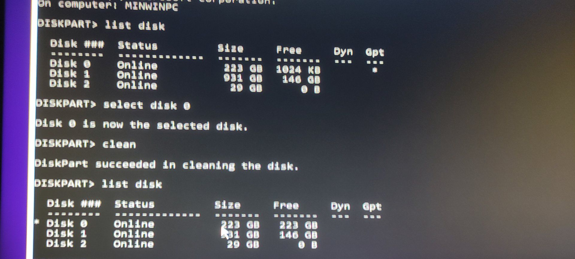 Fotoğrafta cleanden sonra temizleniyor fakat gpt olmuyor convert MBR yazınca içi dolu oluyor gpt oluyor