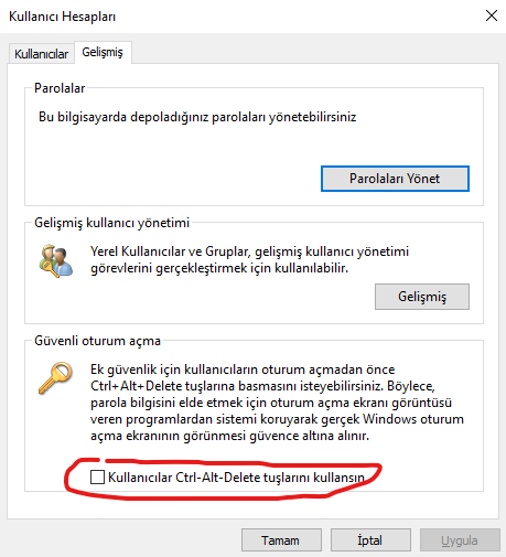 Arkadaşlar girişte normalde direkt kullanıcıya giriş yapar ve açılırdı PC ama bir gün PC siyah ekran verdi. Kendi yaptığım kadarıyla yaptım ama artık girişte direkt PC açılmıyor. CTRL+alt+delete basıp girin diyor. Bunu nasıl kapatırım?