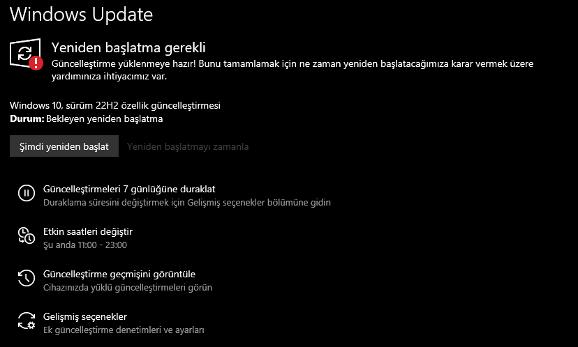 Windows 10’da güncelleme yüklendi fakat yeniden başlatıyorum güncelleniyor bilgisayarınızı kapatmayın yazısı.