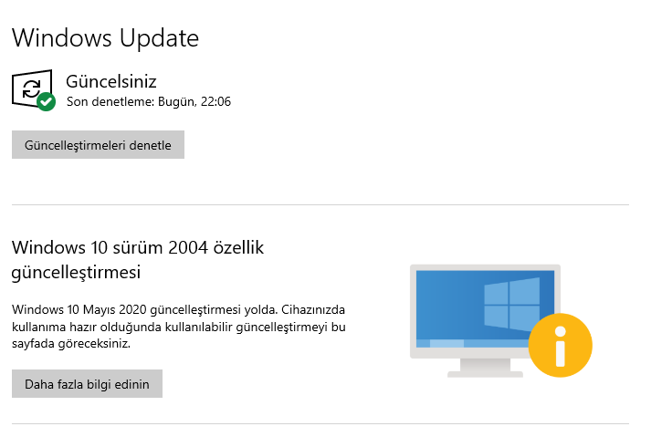 Arkadaşlar sürekli karşıma Windows 10 Güncelleme diye uyarı çıkıyordu geçen gün 3 tane mi? ne güncelleme attım. Ama halen Güncelsiniz demesine rağmen hemen altında uyarı gösteriyor.