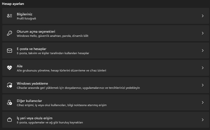 Yanlış yere bakıyorsunuz. "E-posta ve hesaplar" değil, daha alttaki "Diğer kullanıcılar" bölümüne bakın.