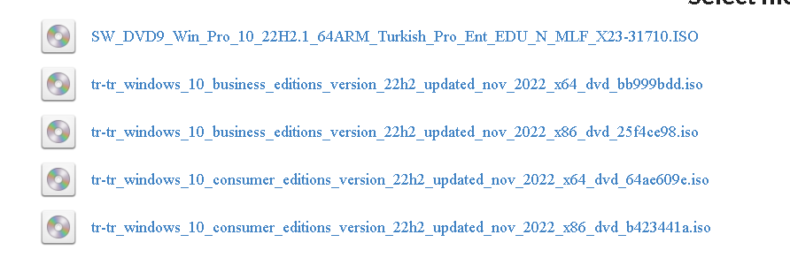 Operating System içerisinde Windows ISO’larını bulabilirsin.File list :: List of files by Microsoft®