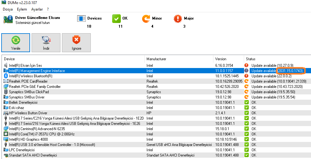 Intel(r) management Engine ınterface Update available (2031.15.0.1743) bu sürücü yazılımını bulamadım. Gerekli mi bu sürücü?
