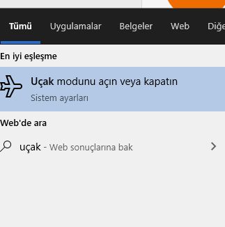 Uçak modu yazınca herhangi bir arama çıkmıyor.Laptop ise evet böyle yapılmalı kesinlikle değilse, bilemeyeceğim fakat gösterdiğim gibi uçak modu ayarından direkt kapatabilirsiniz eğer orada açık görünüyorsa kapalı yapmanız yeterli olacaktır Wi-Fi'ye bağlanmanız için.