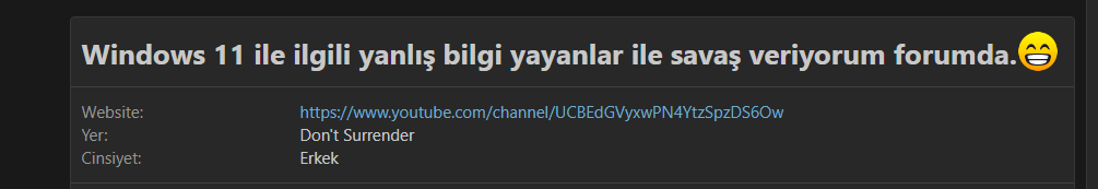 tartışmıyorum, aksine "hakkımda" kısmında yazdığım gibi forumda Windows 11 ile ilgili yalan yanlış konuşan kişilerle savaş veriyorum. :D.Eki Görüntüle 1278057