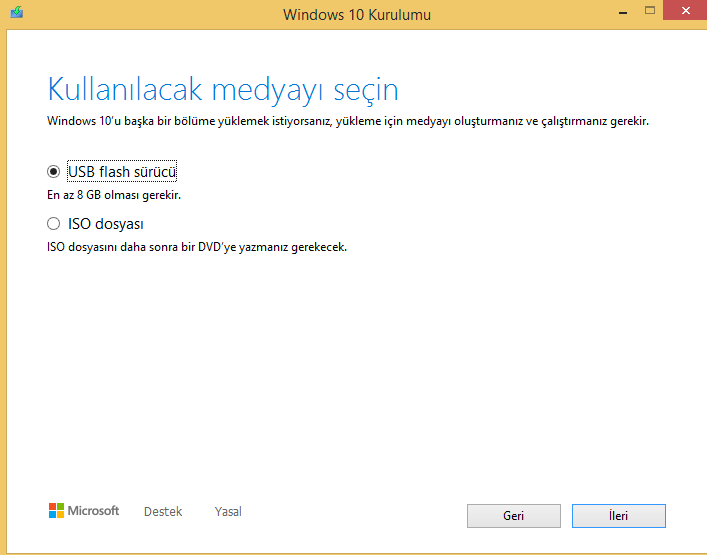İhtiyacımız olanlar: En az 8 GB boyutunda USB veya CD, Windows 10 sistem gereksinimlerini karşılamak.