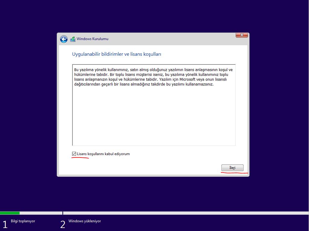 3- açılınca birkaç şeyi hazırlıyoruz kısmı bittinten şartları kabul ediyoruma tıklıyoruz.