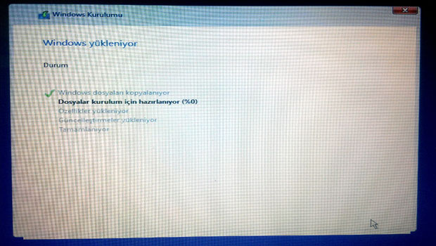 13- flash diskimizdeki sistem dosyaları bilgisayarımıza kopyalanıyor. Bu işlem 5-10 dakika gibi bir sürede tamamlanır ve makine kendini yeniden başlatabilir.