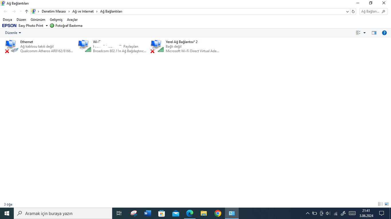 Ağ bağlantıları kısmının resmini atabilir misin?