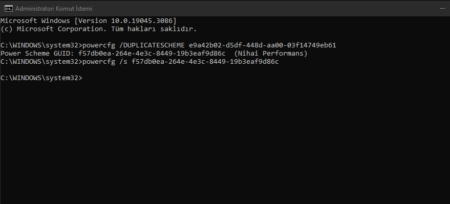Merhaba dostlar, komut istemini yönetici olarak başlatıp her yerde söylenen nihai modu açma kodlarını giriyorum fakat ekranıma gelmiyor. Ekran görüntüsü mevcuttur. Bu şekilde kalıyor: