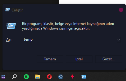 • Başlat > Çalıştır > Temp
