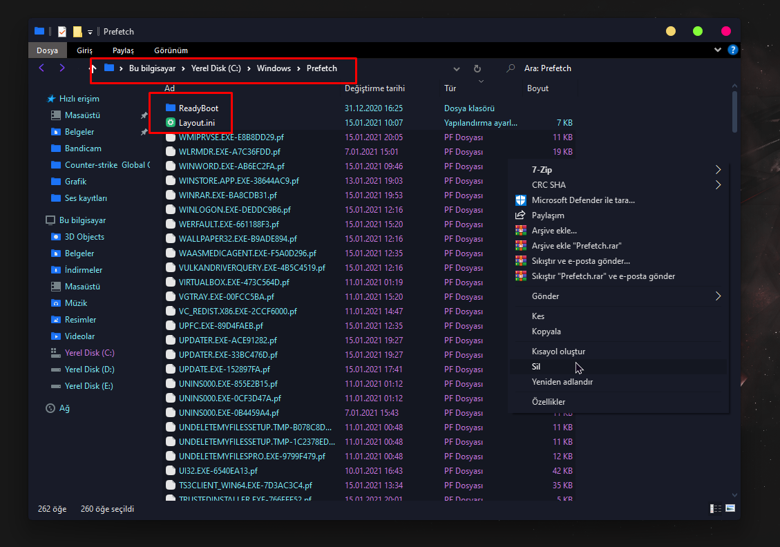 • C:\Windows\Prefetch dosyasına gidin.