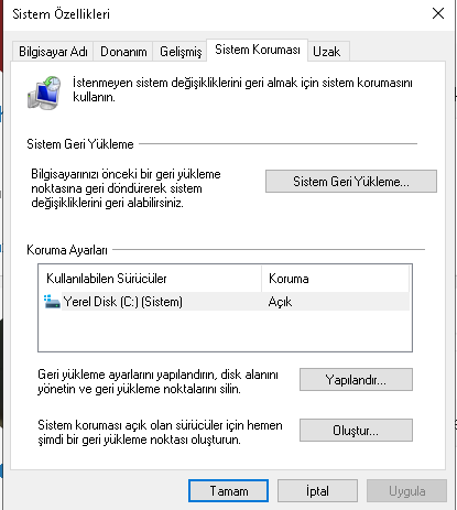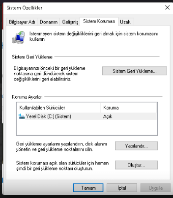 Sistem geri yüklemeye tıklayın ve en alttaki farklı geri yükleme olanı seçin ve ileri deyin sonra SS atın.