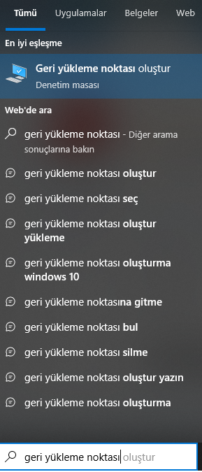 Şu en üstteki sistem geri yüklemeye tıklayın. Ve dediğim gibi en alttakini seçip ileri deyin.