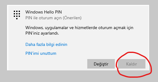 Windows 10 pini kaldırılmıyor