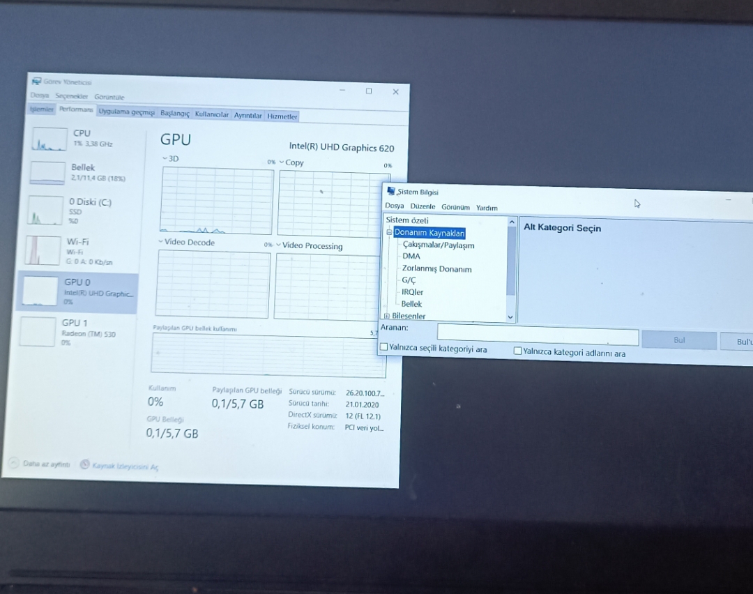 - Intel yerleşik, amd radeon 530