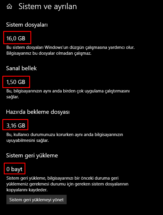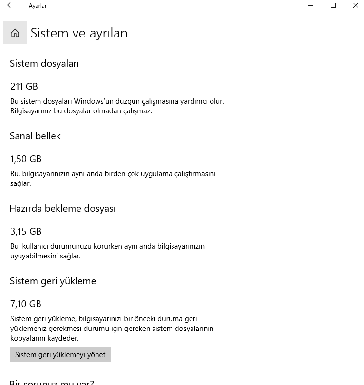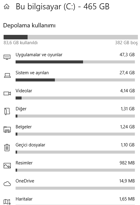 Depolama ''Diskte yer açın'' komutu ile sistemdeki gereksiz dosyalarını silin.